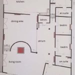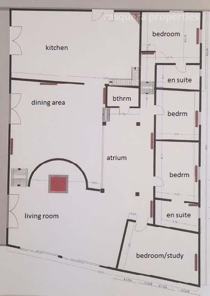 Three double bedrooms, two en-suite, and a study/single bedroom are off a passage to the left of the atrium.