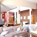 To the left of the dining area is a family shower room and a large glass-walled atrium. To the front of the room, on the level below the dining area, the marble floored living room with glass sliding doors to the front and side of the room allow in plenty of natural light.