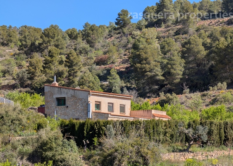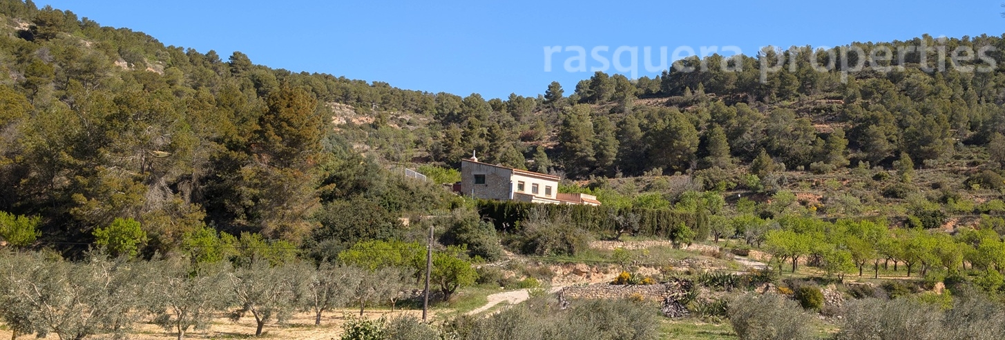 Approached via a private driveway, with almond and olive groves on either side, the 122m2, two floor house with 59m2 porch sits on a rise in a sheltered corner of the property, which affords it spectacular views over the land and down the valley.