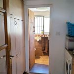 To the left of the kitchen is a galley-style utility room, with a tiled shower room to the back of the house.